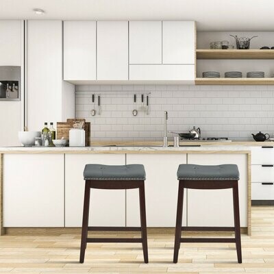 Saddle stools,padded cushion saddle ,bar stools with brass nailhead studs (set of 2),linen fabric backless counter stool & wooden legs, backless bar stool nailhead cushion ,grey (30 inch) 4.3 out of 5 stars 87.